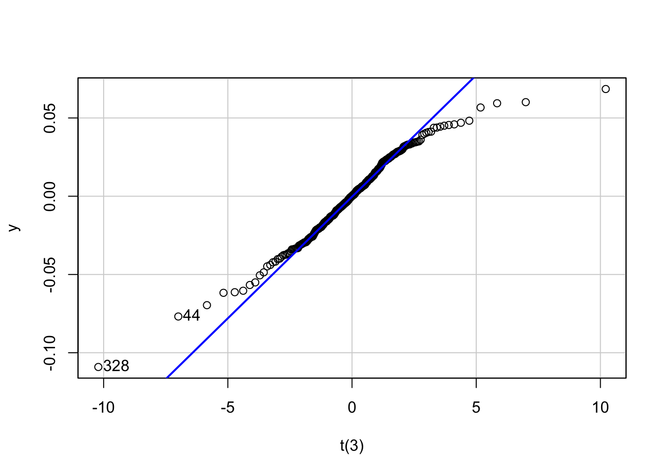 x = qqPlot(y, distribution = "t", df = 3, envelope = FALSE,