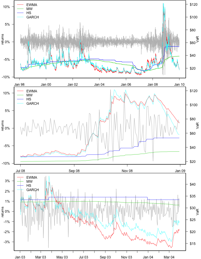 Philippe Mueller spotted a bug in the legend of Figure 8.1. It is an unwieldy figure, with almost too much going on, and hard to see in black and white. The color plot below is much clearer, and hopefully correct. Also, I called returns, volatility. Guess the pic was cursed. Finally, one could specify the probability, 1%. In any case, here is the correct.
