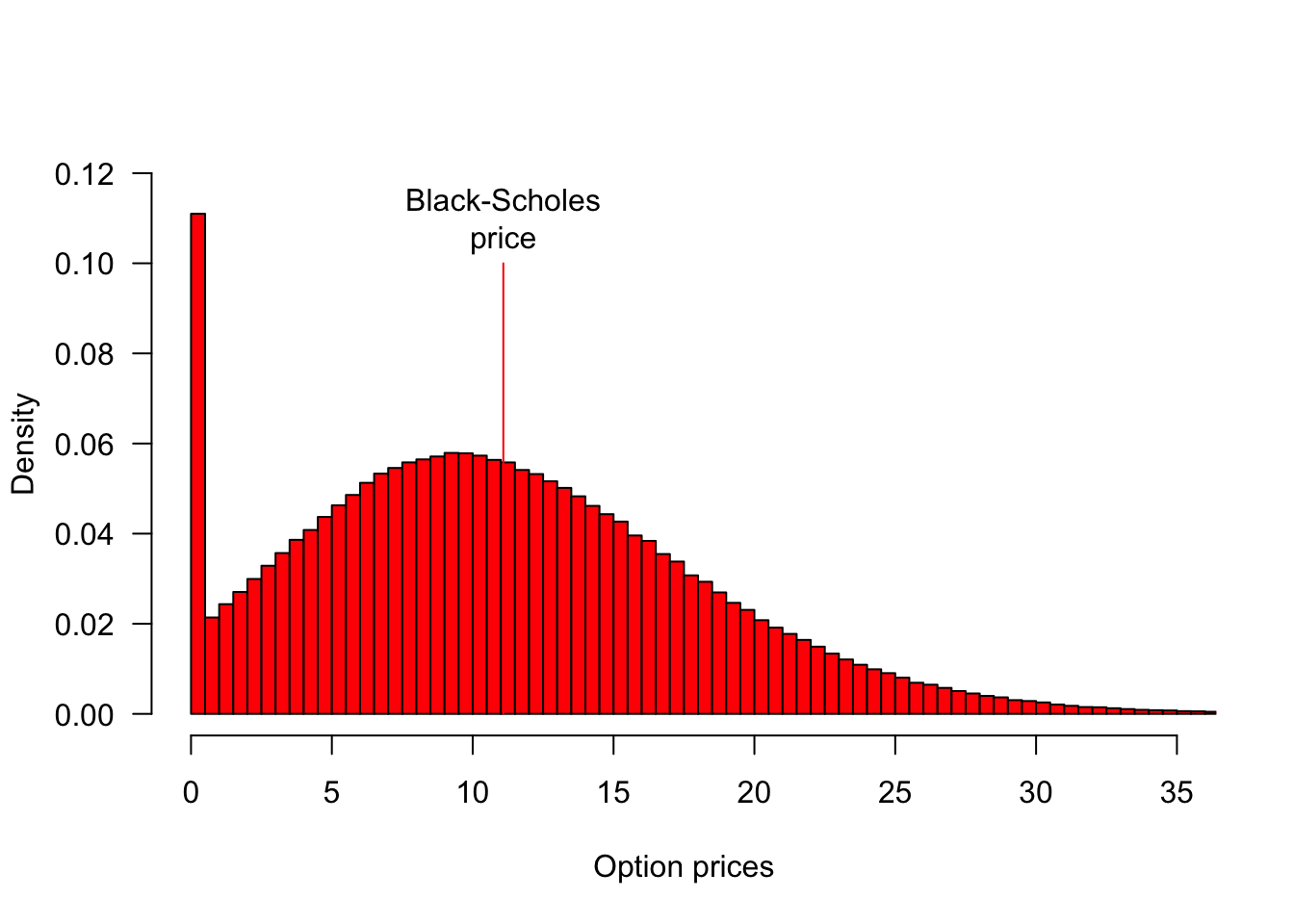 It is very common to use simulations to price options. Below, we use it to price a standard Black-Scholes option. Of course, we know the true option price in that case, but that allows us to compare the accuracy of the simulation to the true value.