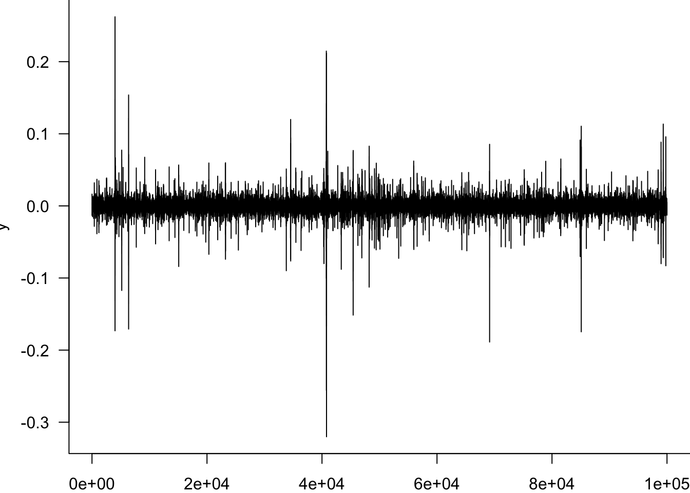 plot(s@simulation$seriesSim,type='l',bty='l',las=1,main="Simulated tGARCH S&P 500")16.7.1.2 Simulation and estimation